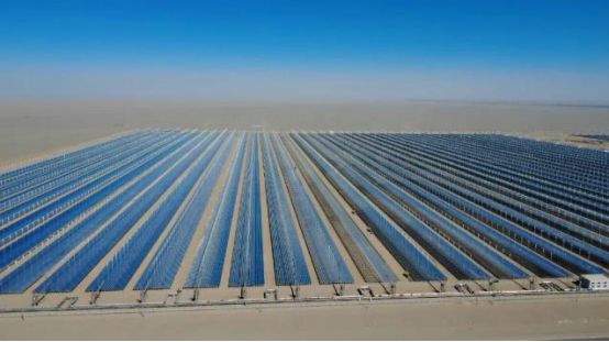 ▌项目概况:该项目由中广核新能源德令哈有限公司主导开发,项目采用自主知识产权的大开口熔盐槽式技术和模块化镜场技术。主要建设30万千瓦槽式太阳能热发电系统,集热场采用8.6米开口槽,共设计安装407个集热回路,单个回路面积6388平方米,集热总面积约260万平方米,储热时长为8小时。项目建成后,每年发电量约7亿千瓦时,年等效利用小时数约2400小时,相当于每年减少碳排放约38万吨。