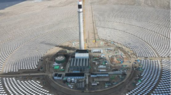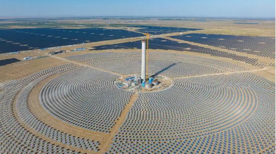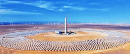 ▌项目概况:“十四五”重点能源项目,采用先进的熔盐塔式光热技术,通过1.6万面、约80万平方米的定日镜将太阳能反射至吸热塔,使熔盐升温至560℃,再通过高温熔盐进行逆流换热,实现机械能向电能的转化,输出持续稳定的清洁能源。